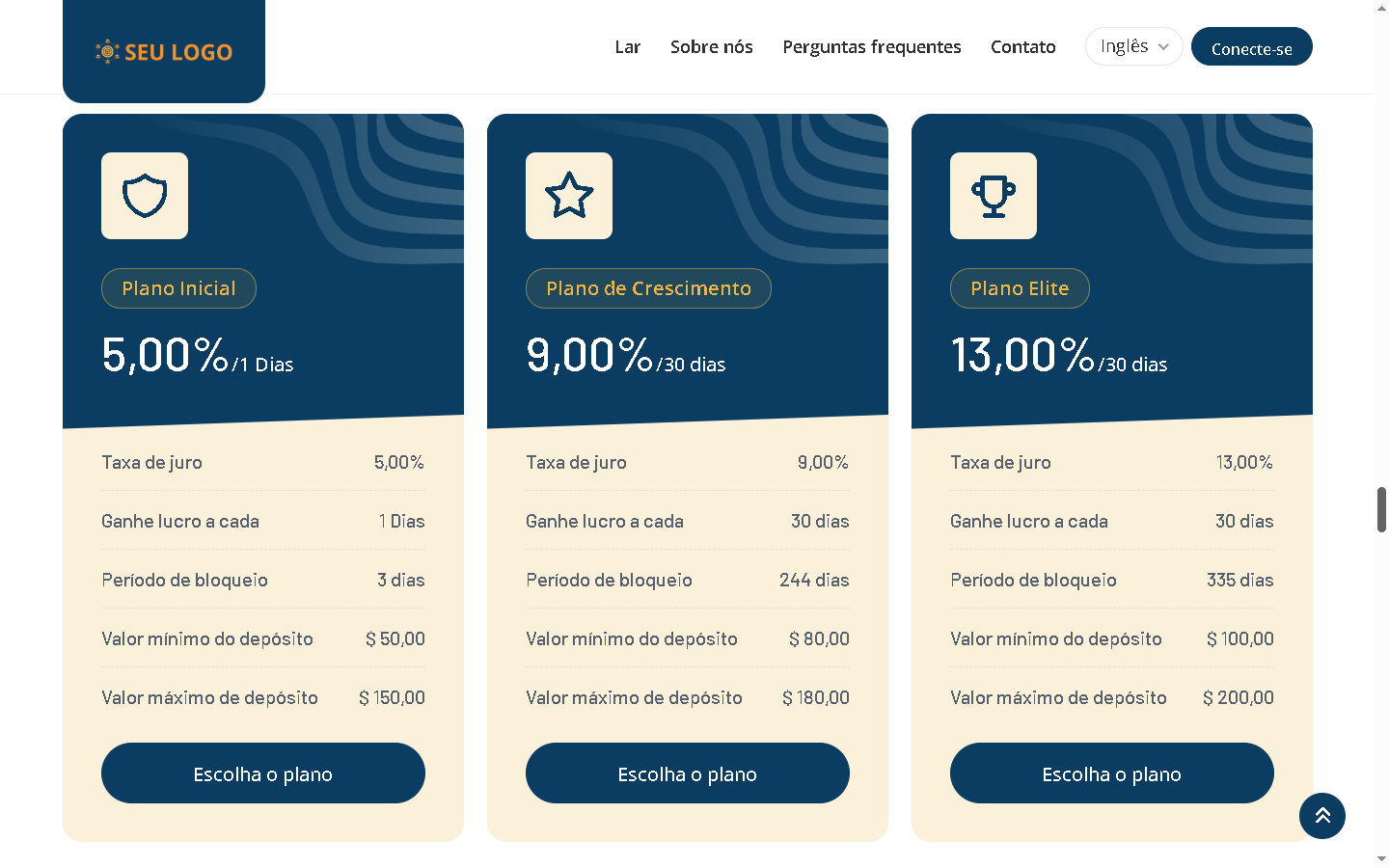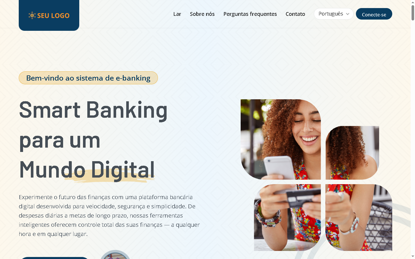 - Páginas inicial e interna com design elegante.
