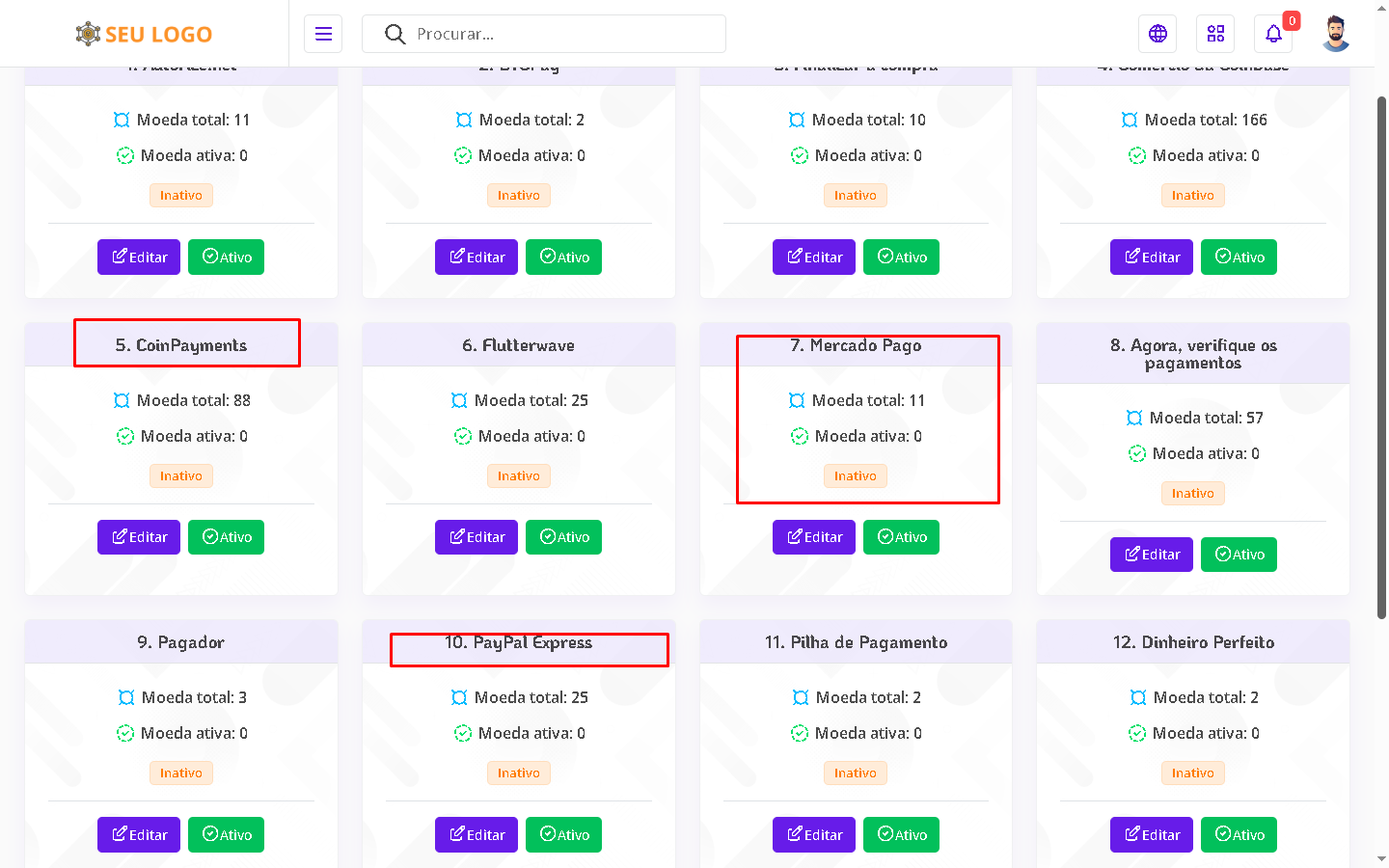 - Gerenciador de métodos de pagamento.