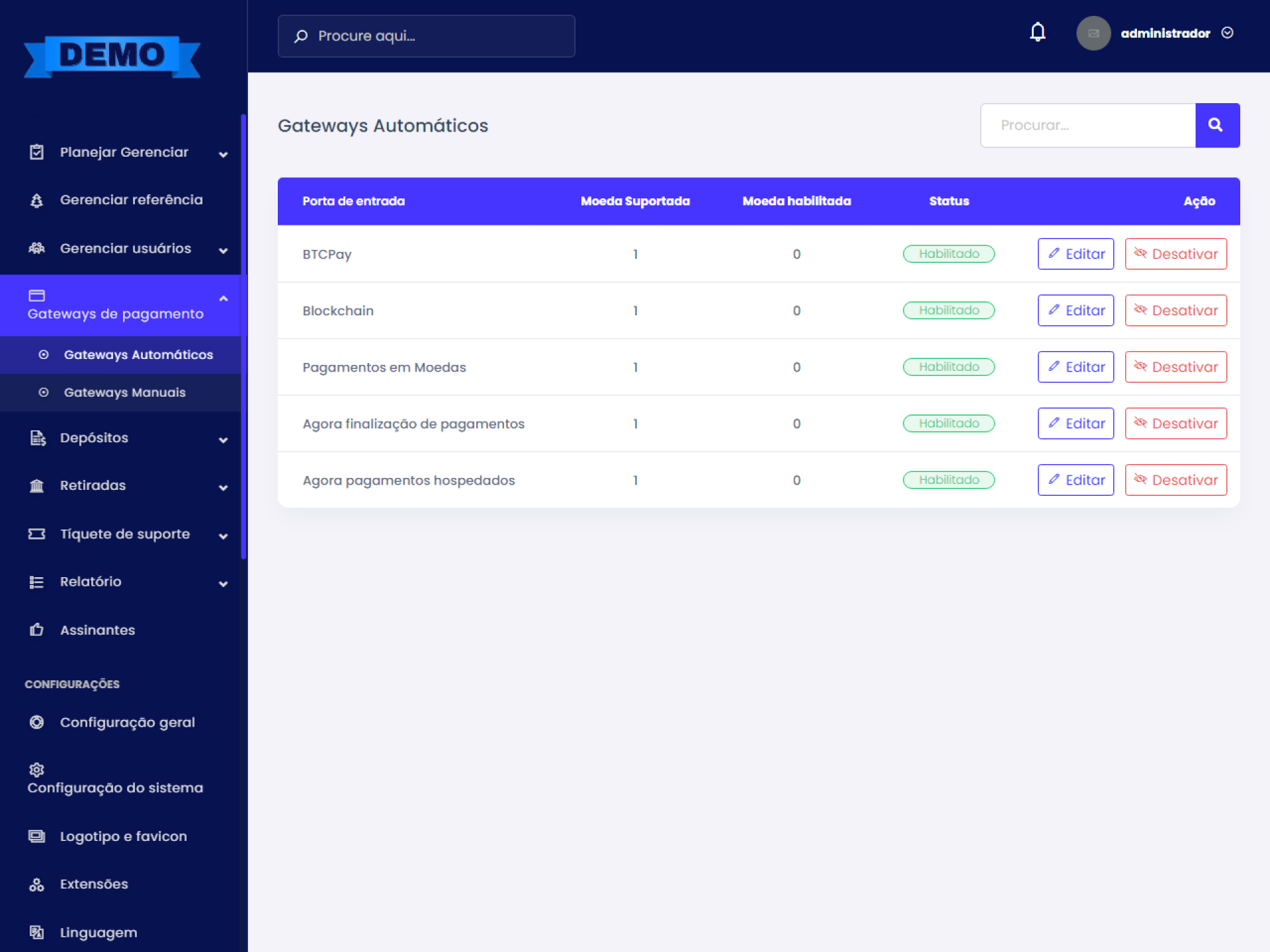 - Vários gateways de pagamento.