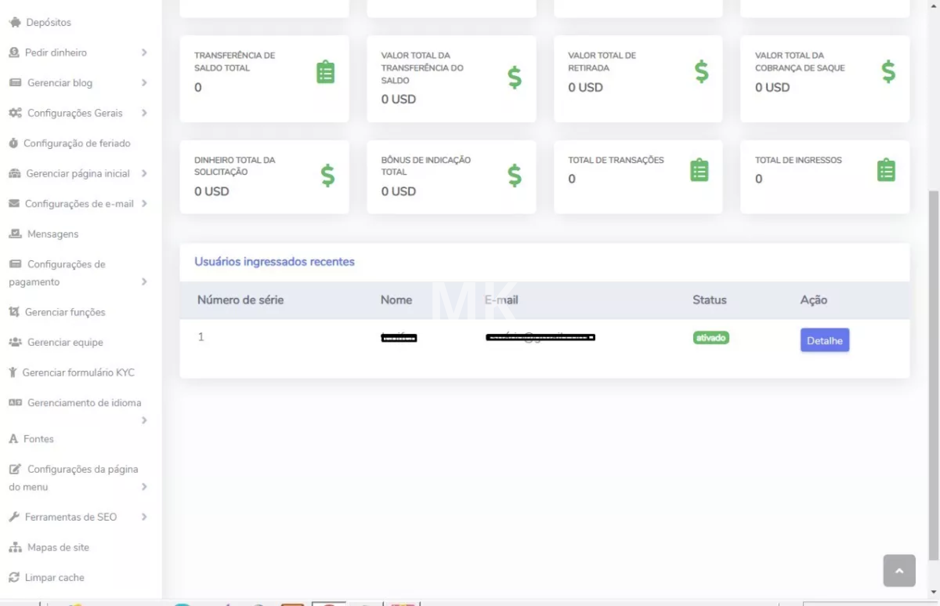 - Capaz de definir novo usuário de indicação e bônus de usuário.