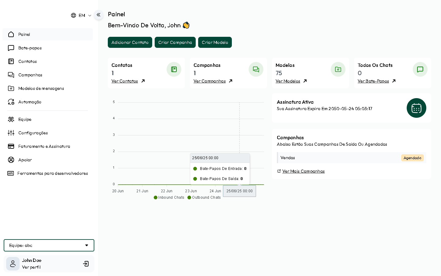 Campanhas de mensagens: envie campanhas de mensagens em massa para seus contatos de acordo com sua programação.