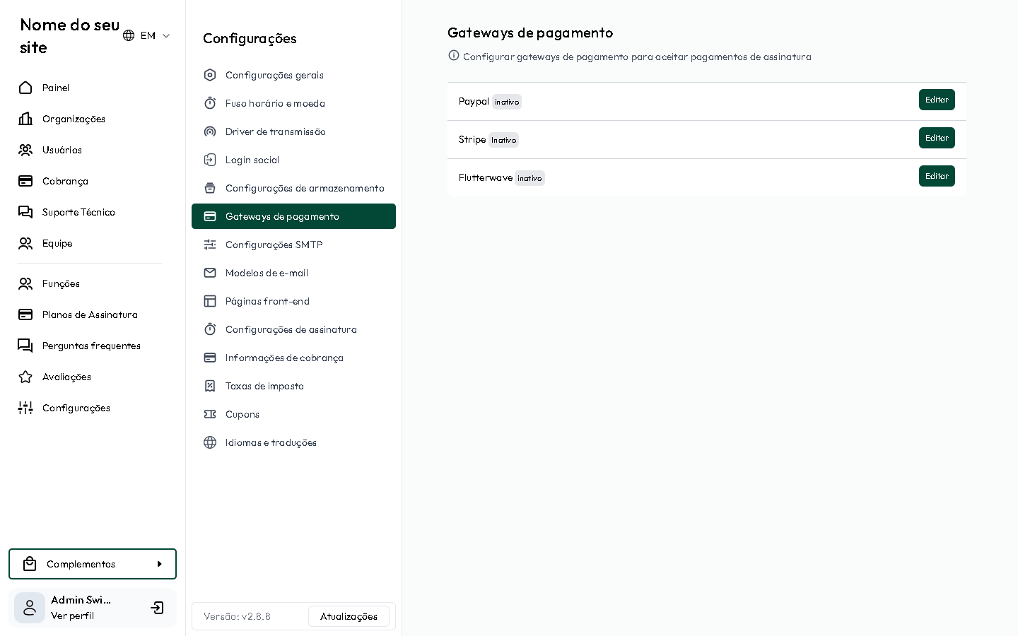 Funcionalidade SAAS: Adicionar e gerenciar planos de assinatura