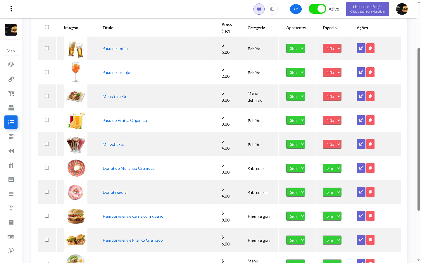 - Construtor de menu por arrastar e soltar