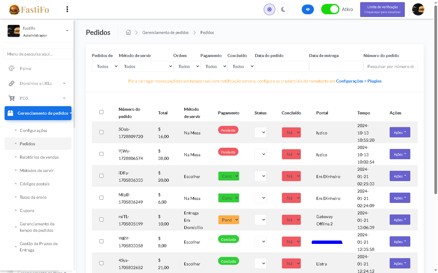 - Pedido via site, PDV e QR Code