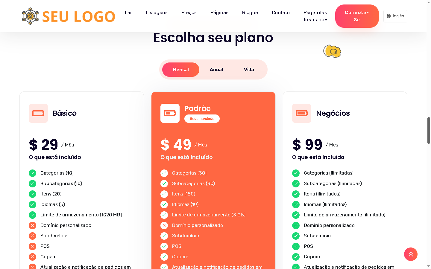 - Planos gratuitos, teste ou premium com diversas periodicidades