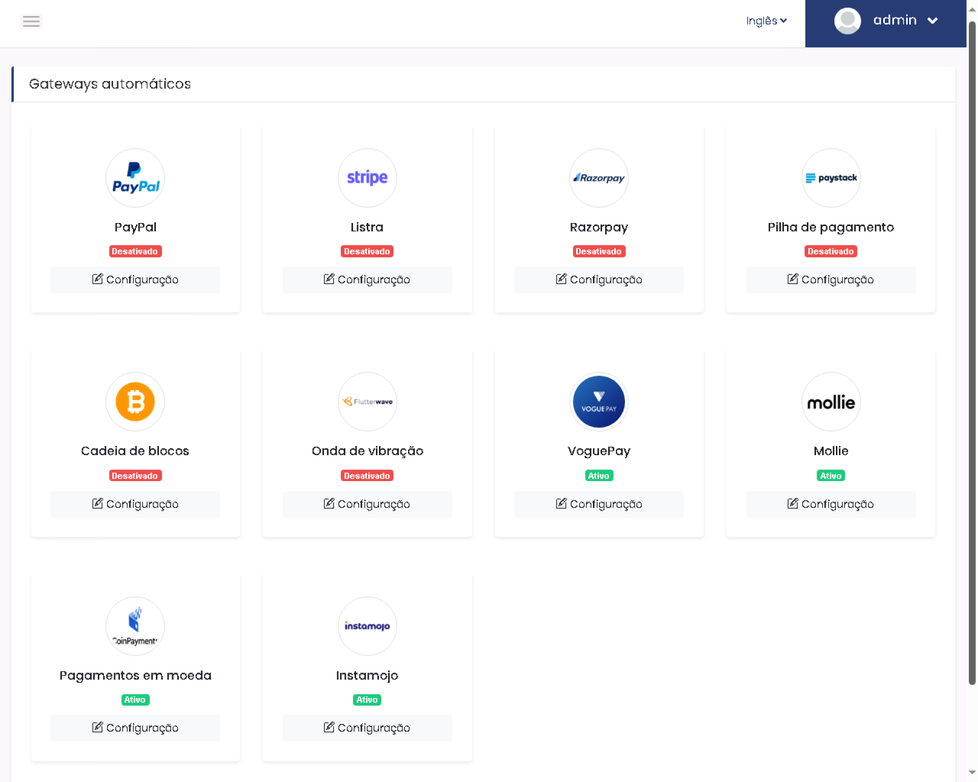 Em contraste, este sistema inclui vários recursos de conta, como conta poupança, conta corrente e também você pode criar diferentes tipos de contas para cada cliente em particular. Este sistema vem com 10 gateways de pagamento online populares, como PayPal, Stripe, Razorpay, PayStack, Flutterwave, BlockChain (Bitcoin), VoguePay, CoinPayments (Crypto), InstaMojo e Mollie. Gateways de pagamento usados principalmente para depósito automático de dinheiro na conta do cliente instantaneamente. Este script também vem com 4 gateways SMS populares para que você possa integrar facilmente o gateway SMS desejado para notificações por SMS.