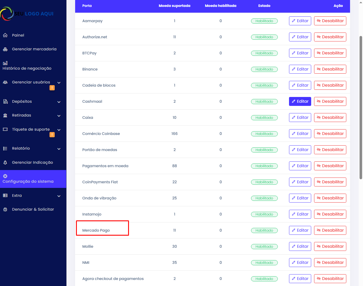 - Vários gateways de pagamento.