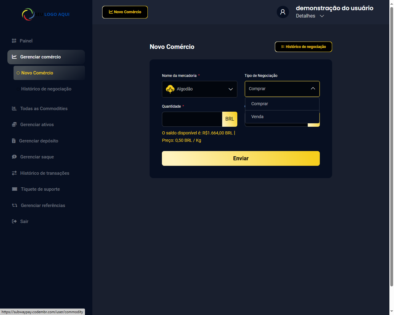 Plataforma de negociação de ponta para negócios de negociação perfeitos. Participe do painel de administração dinâmico, simplifique o comércio online e desfrute de transações seguras. Conecte-se sem esforço com o login social e escolha várias opções de pagamento. Junte-se a nós para uma experiência digital mais inteligente, segura e envolvente.