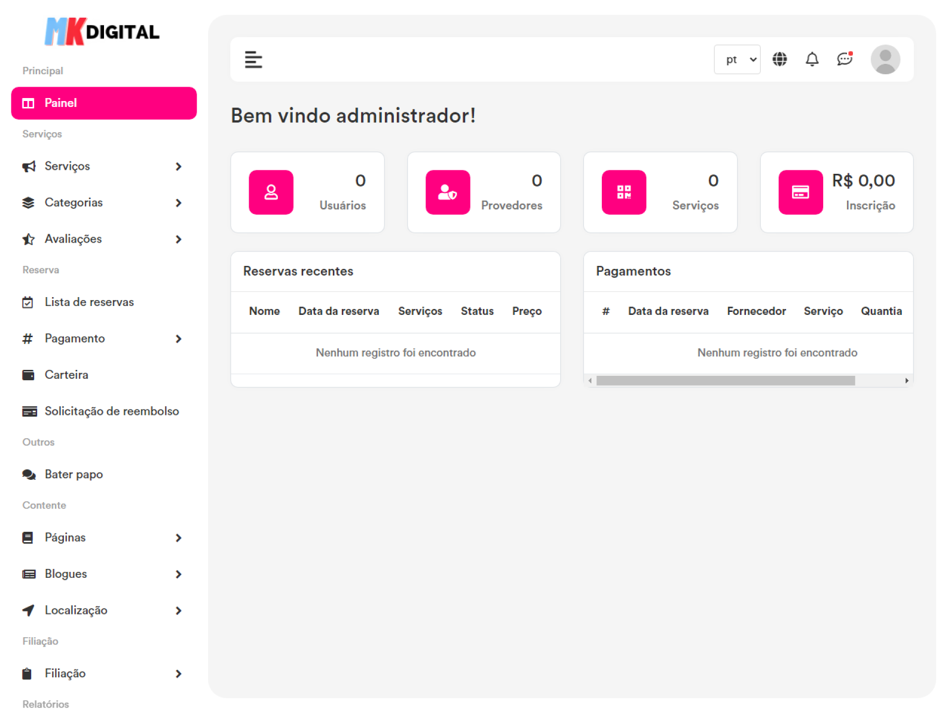 - Sistema de chat: Assim que a reserva for confirmada você poderá se comunicar com o prestador de serviço através do sistema de chat.