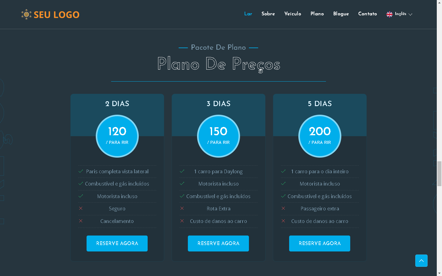 O site ostenta um design limpo e simplificado, facilitando a busca e reserva do veículo desejado pelos usuários sem esforço. Ele oferece suporte a listagens para todos os tipos de veículos, incluindo carros, ônibus, caminhões