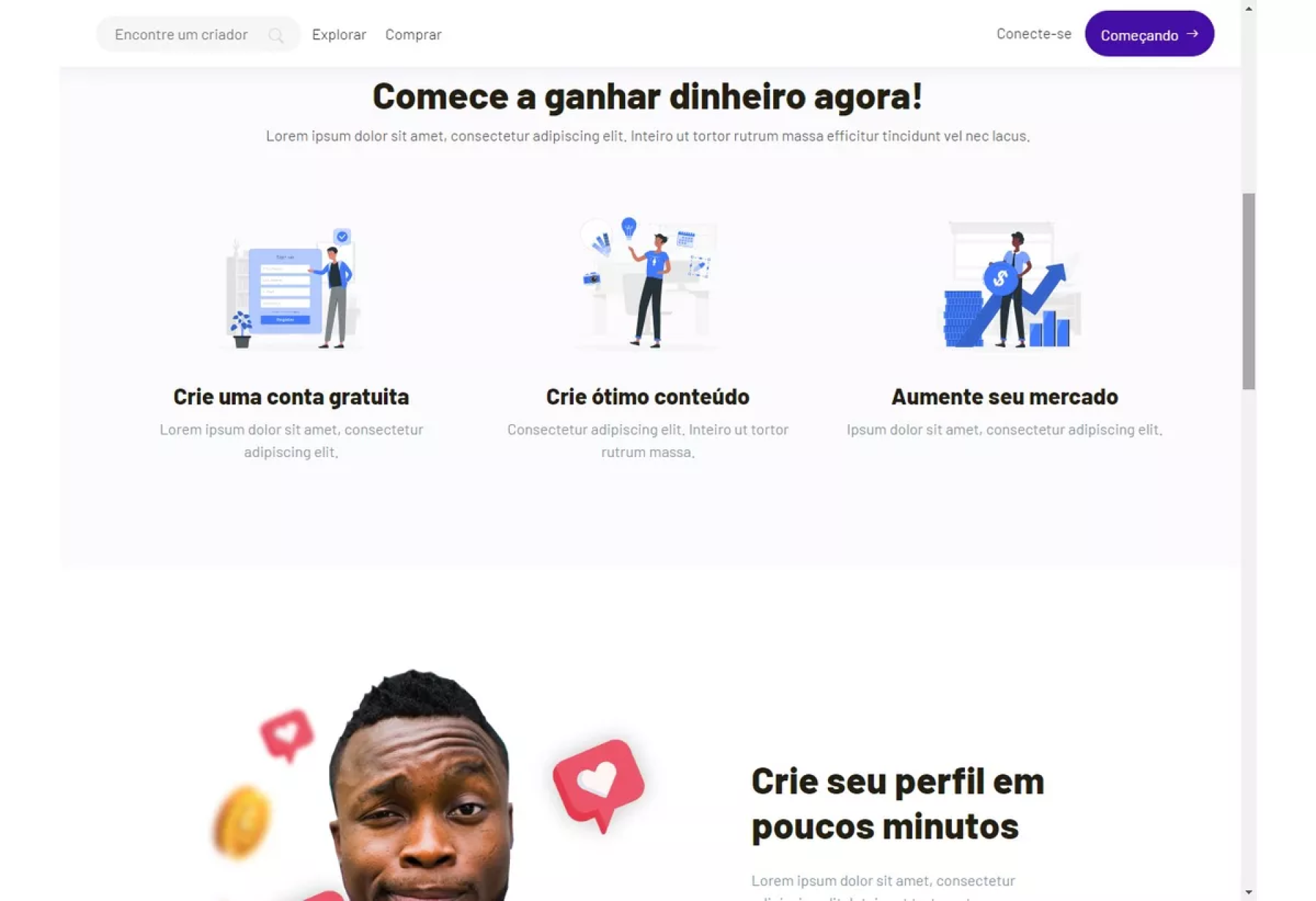 - Pesquise criadores por nome/nome de usuário, categorias e filtre por destaque e novo
