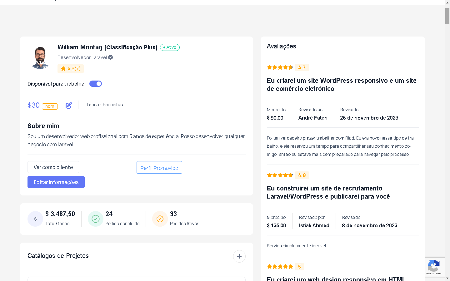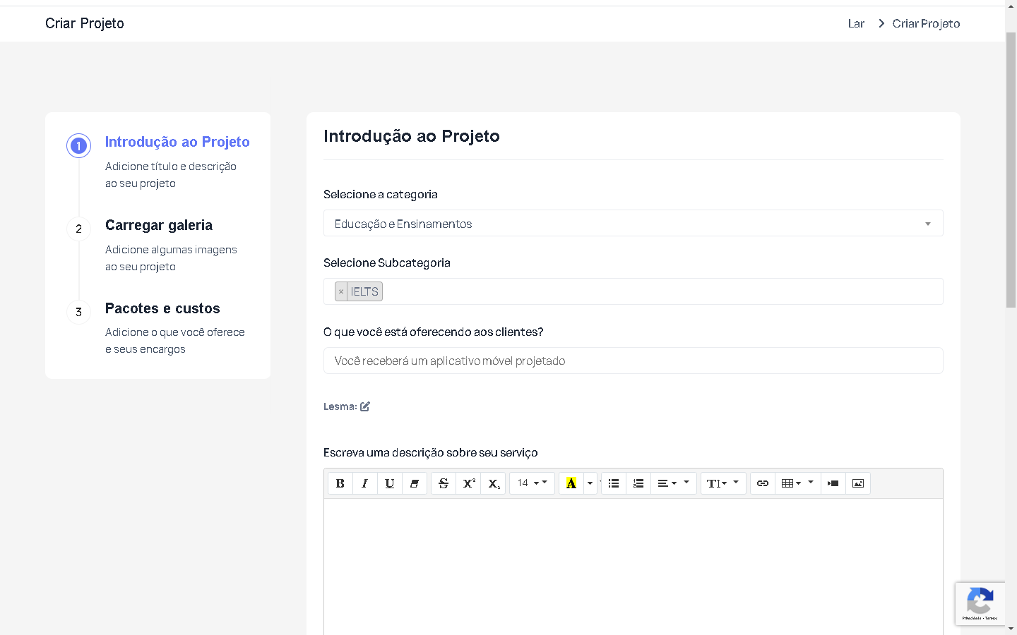 No mercado da plataforma, o processo de publicação de vagas é projetado com precisão para atender às necessidades específicas dos clientes. Os clientes têm a flexibilidade de detalhar seus projetos definindo o nível de experiência necessário, as habilidades desejadas, o orçamento e o cronograma. Essa abordagem abrangente garante que cada aspecto de seus requisitos seja comunicado claramente. Além disso, a plataforma aprimora o processo de recrutamento com um sistema de correspondência inteligente. Esse recurso sugere os candidatos mais adequados com base nos critérios especificados na publicação de vagas, simplificando o processo de contratação e garantindo um ajuste perfeito para o projeto. Essa abordagem personalizada para publicação de vagas não apenas simplifica o processo de contratação, mas também melhora significativamente os resultados do projeto.