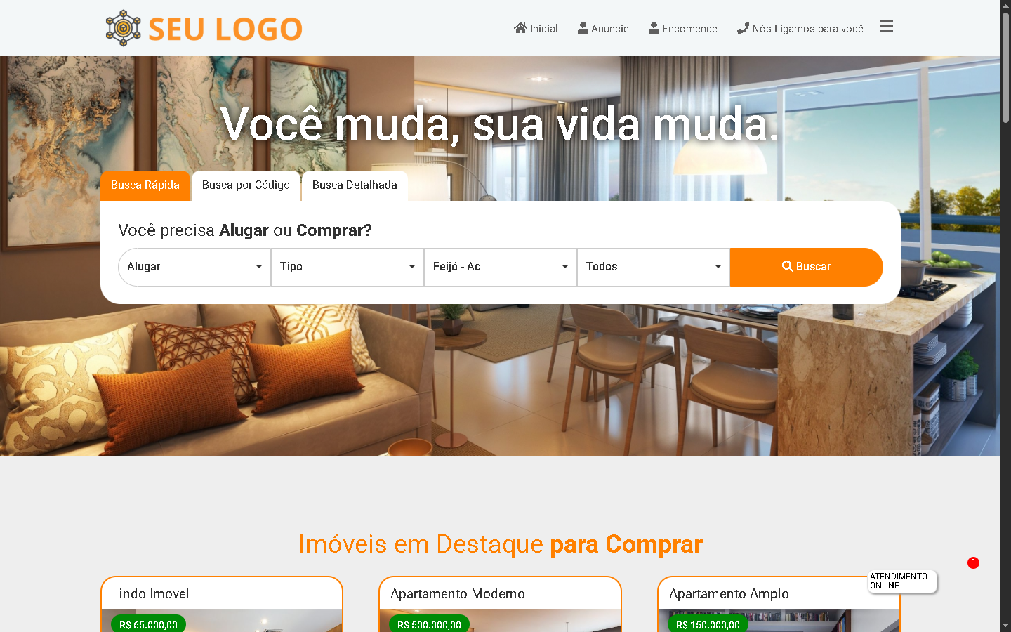 Exibição de imóveis em destaque