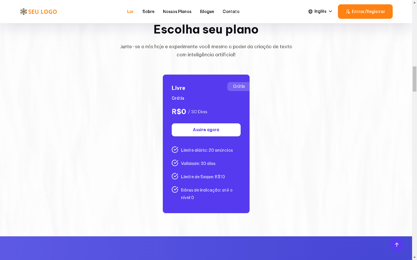 assinatura Todo o plano de assinatura pode ser mostrado aqui, criado pelo administrador.