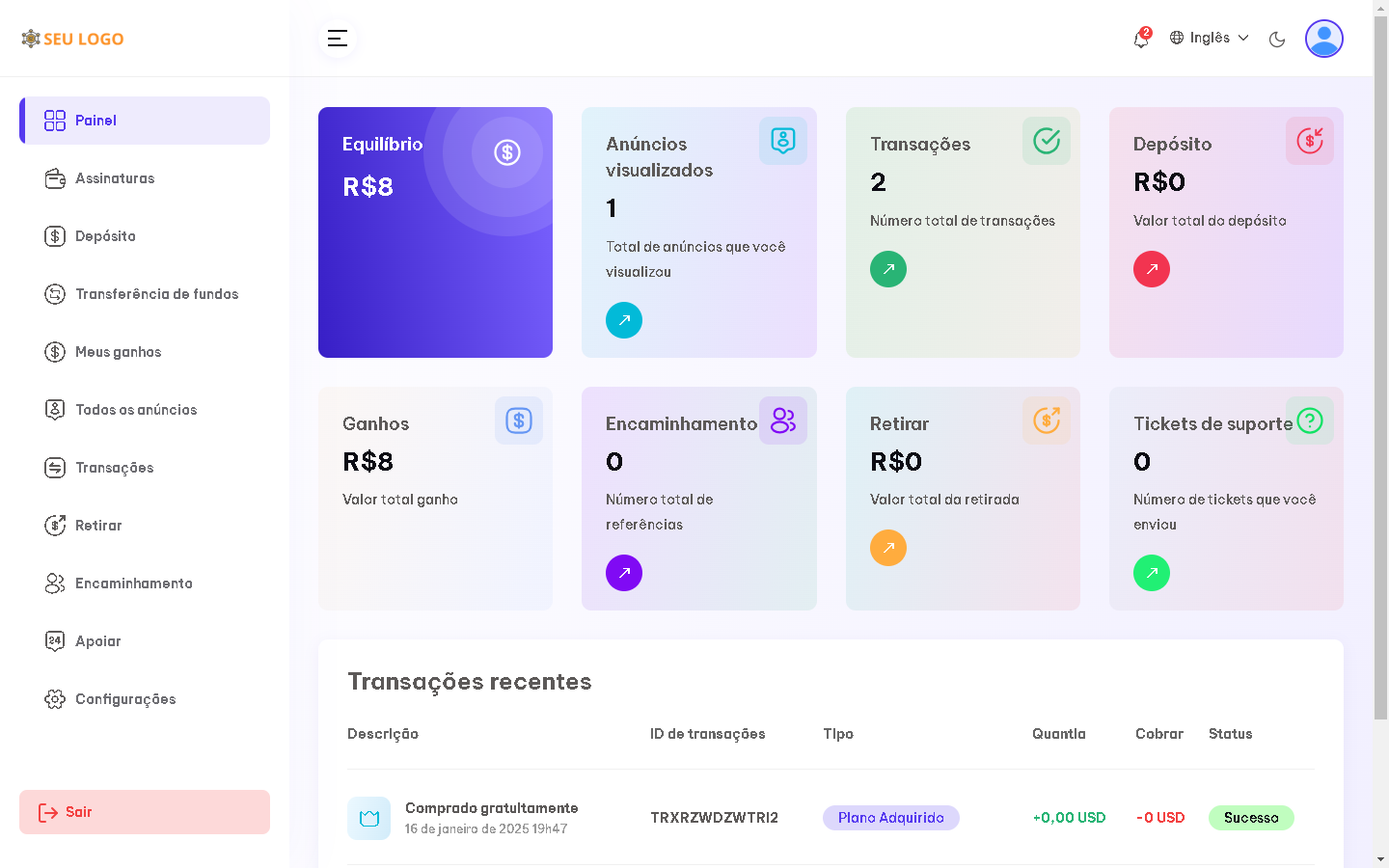 OBS!! SISTEMA ESTÁ EM INGLÊS PORÉM PODE SER TRADUZIDO PARA QUALQUER IDIOMA