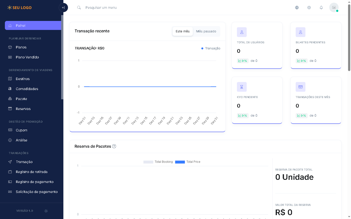 Painel do Administrador: Controle total sobre fornecedores, comissões, avaliações, reservas e conteúdo