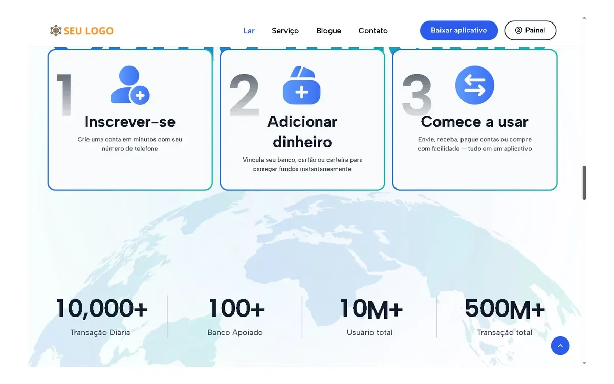 Escalável e seguro: construído com tecnologias modernas, o sistema oferece segurança robusta com verificação OTP, autenticação 2FA e transações seguras, garantindo a segurança das informações financeiras dos seus clientes.