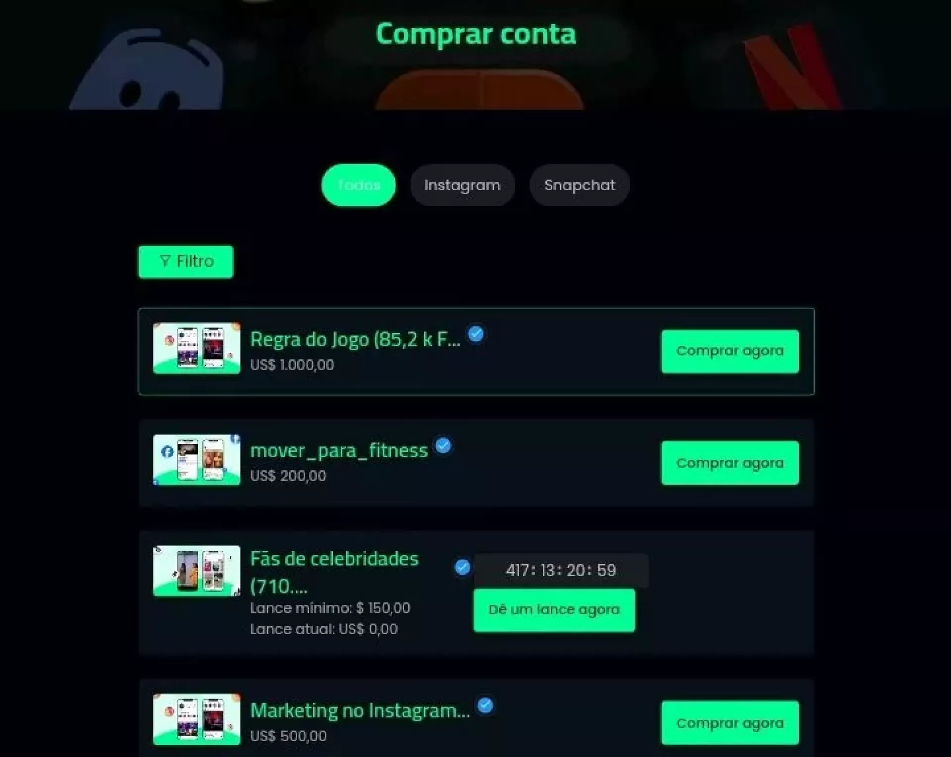 - Compre e venda conta social.