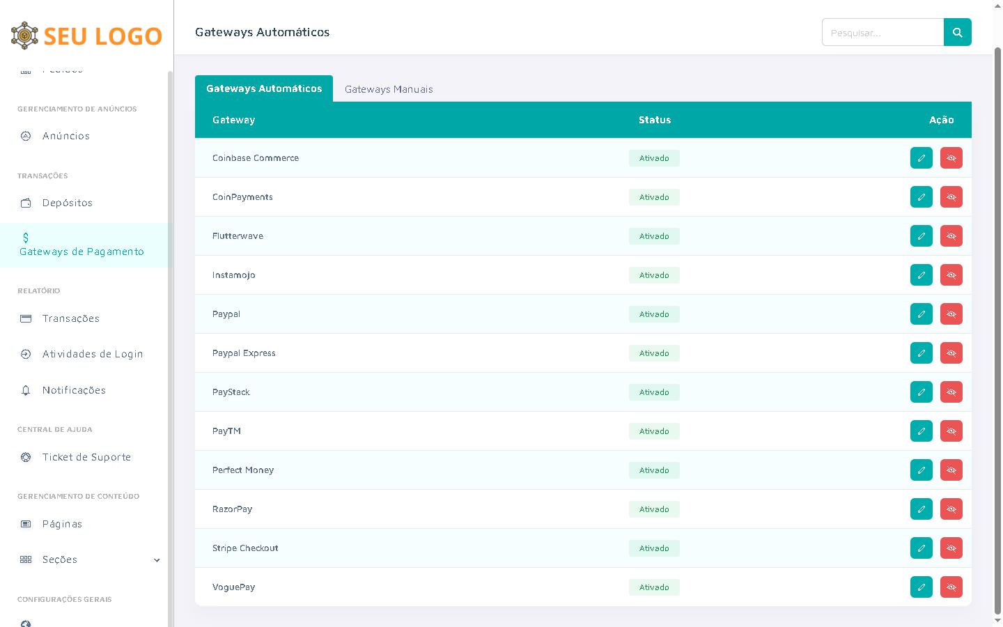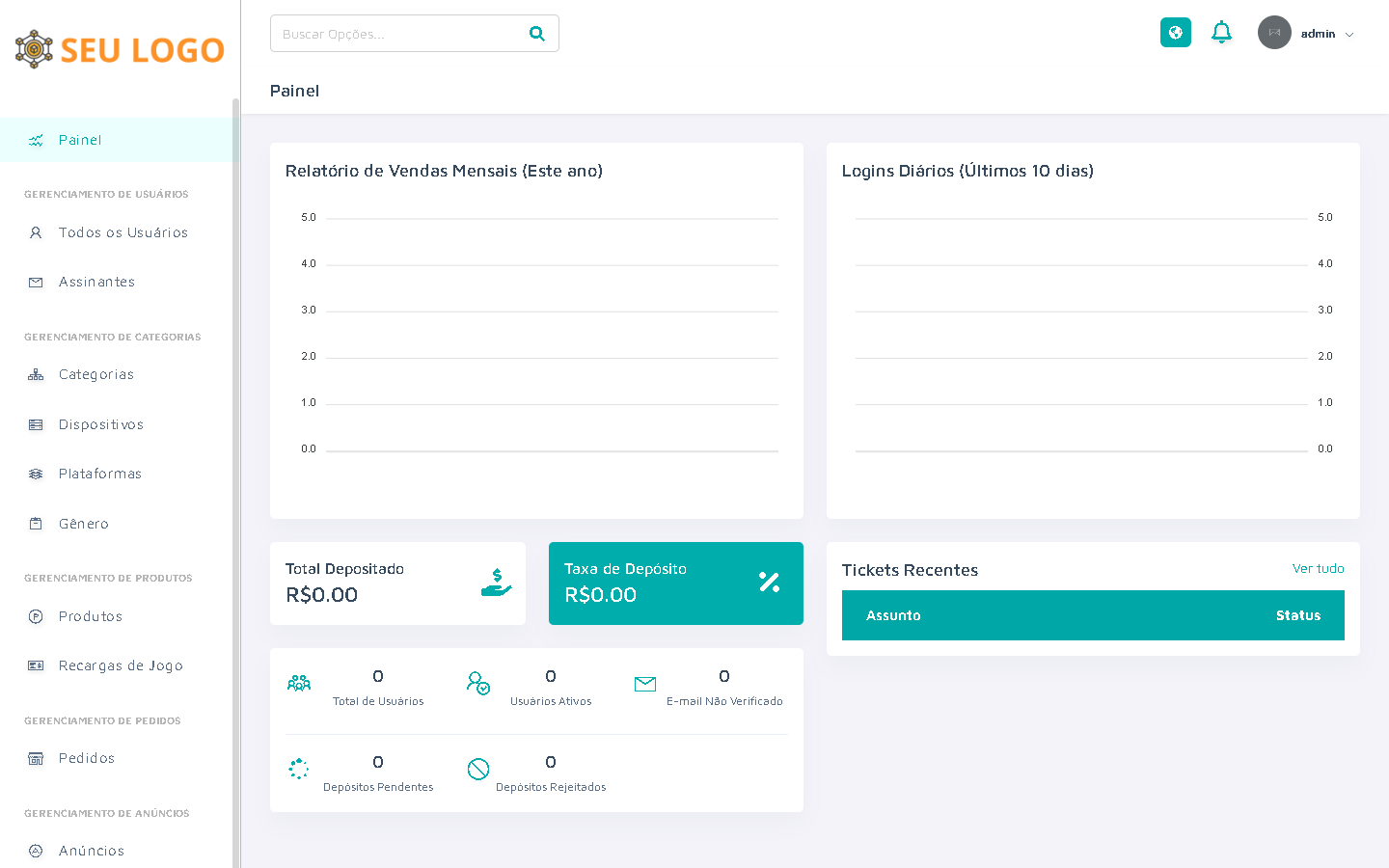 OBS: O SISTEMA ESTÁ EM INGLÊS, MAS PODE SER TRADUZIDO PARA QUALQUER IDIOMA! DEMO https://gsell.comprephp.com.br ADMIN https://gsell.comprephp.com.br/admin LOGIN admin SENHA admin |